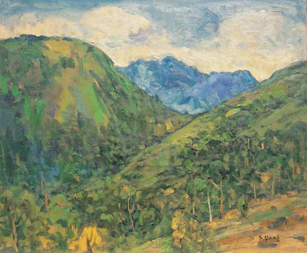杨大师的作品一直被归类为「印象派」, 对此先生深不以为然,他认为崇尙自然是本性所致, 故其思想和画境浑然成为一体;技法方面固受日本「外光派」的影响,但画面呈现的则是他个人的天性和韵味,是撷取自然若隐若现的瞬间感应,以表现不可说的禅机。