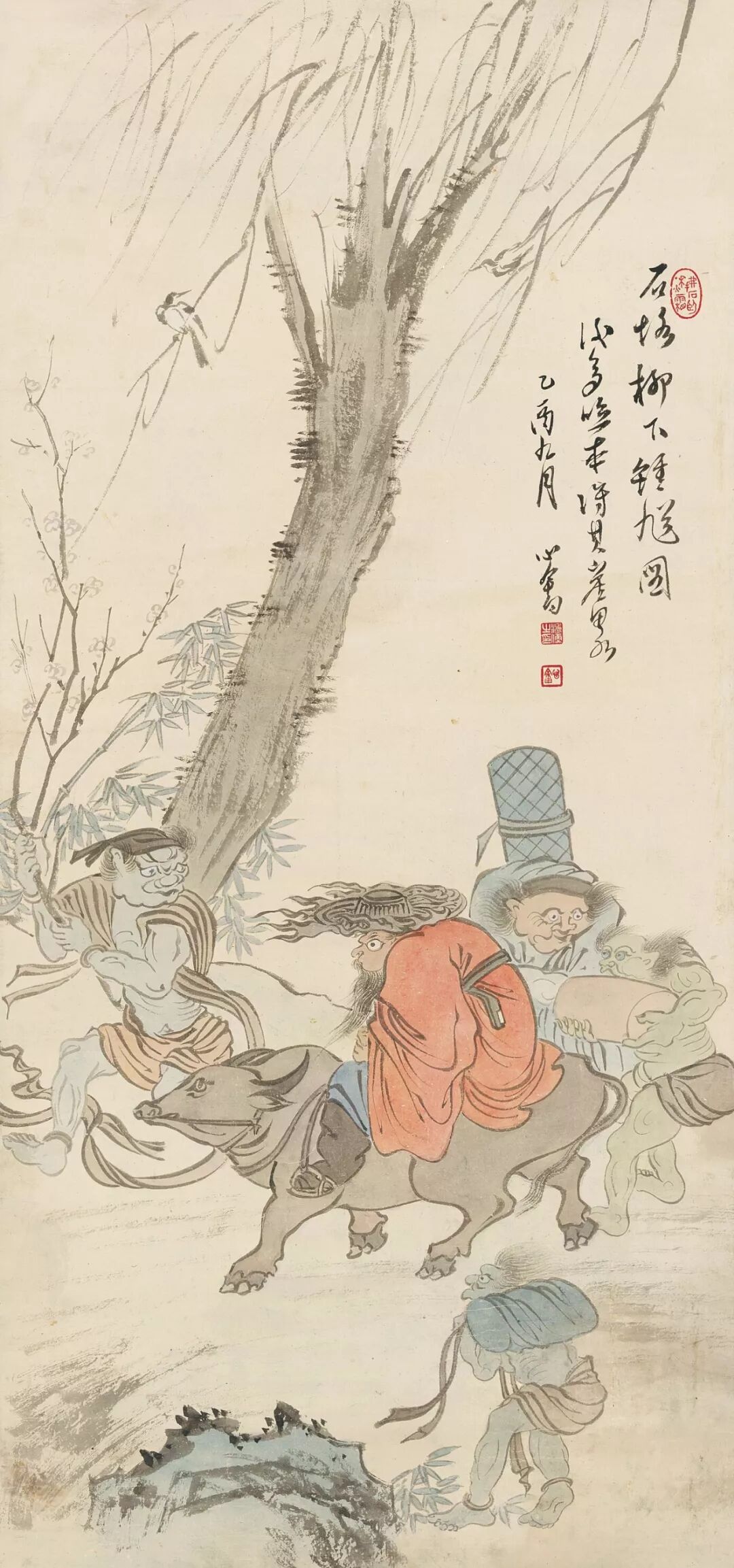 石恪柳下钟馗图。后多临本。得其崖略。乙酉九月。心畬。